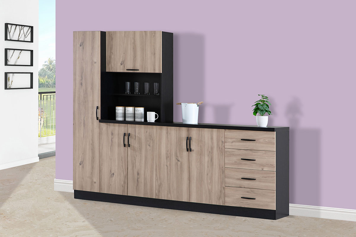• Three-door base and three-drawer dresser unit - extended storage and work surface